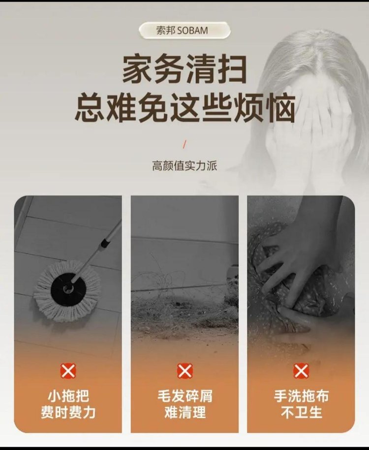 索邦对折伸缩胶棉拖把