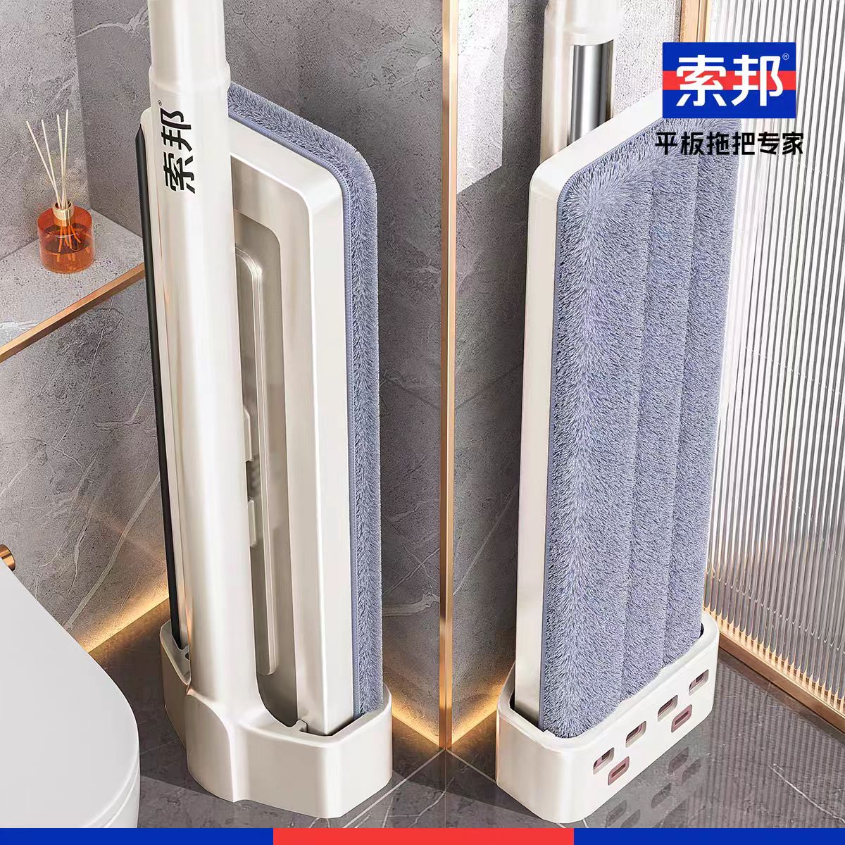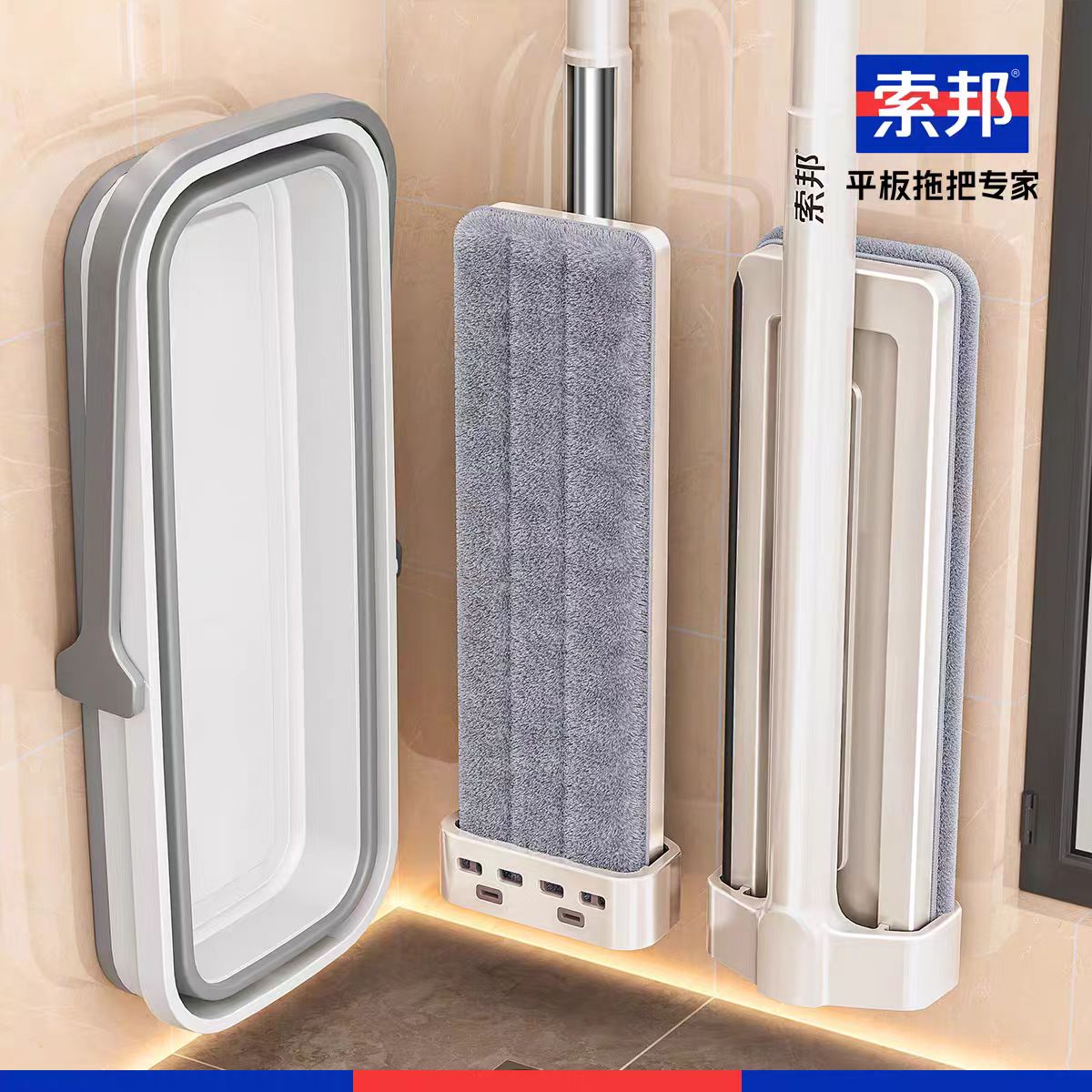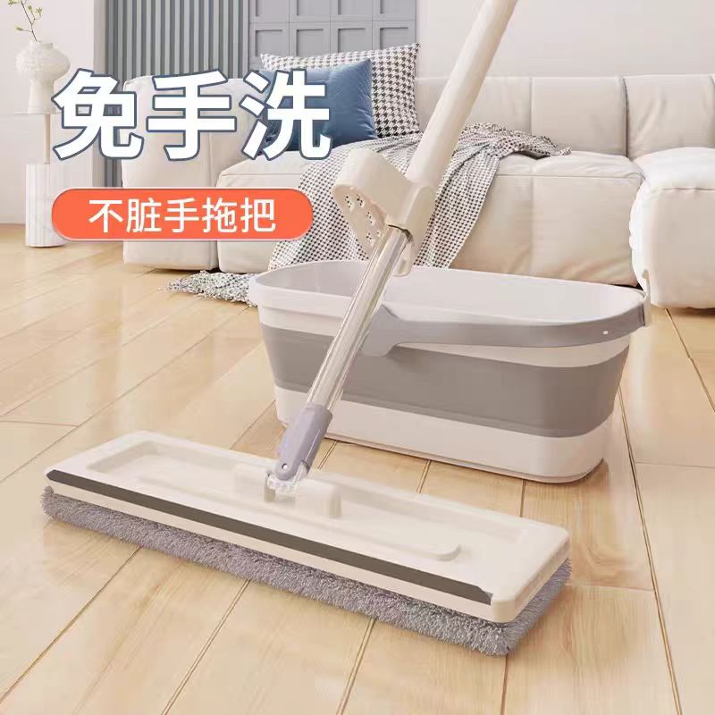 索邦对折伸缩胶棉拖把+折叠桶套装